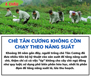 ?? Với cách chăm sóc theo lối “ốp chè”, năng suất chè cao, nhưng tổn thất về lâu dài đối với đất, sức khỏe thì người dân trồng chè đều nhận thấy rất rõ; không những thế còn ảnh hưởng đến chất lượng, hương vị tự nhiên của cây chè.