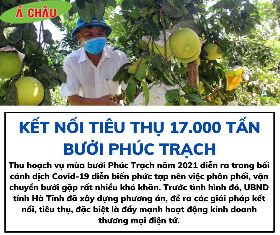 Thu hoạch vụ mùa bưởi Phúc Trạch năm 2021 diễn ra trong bối cảnh dịch Covid-19 diễn biến phức tạp, các thị trường tiêu thụ ở nhiều tỉnh, thành phố thực hiện giãn cách xã hội để phòng chống dịch nên việc phân phối, vận chuyển bưởi gặp rất nhiều khó khăn. Trước tình hình đó, UBND tỉnh Hà Tĩnh đã xây dựng phương án, đề ra các giải pháp kết nối, tiêu thụ, đặc biệt là đẩy mạnh hoạt động kinh doanh thương mại điện tử, do đó việc tiêu thụ bưởi có những chuyển biến tích cực.